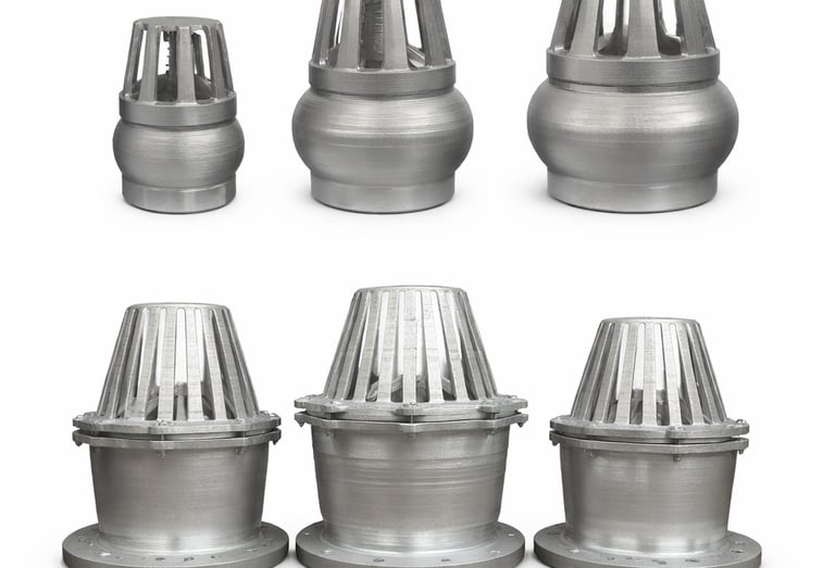 Válvulas de pie y uniones para manejo seguro de fluidos.
